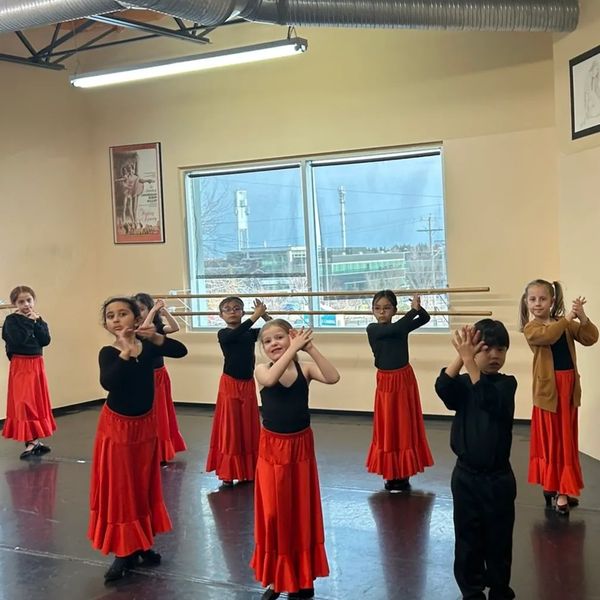 Our kids’ classes follow a structured and progressive curriculum designed especially for young dancers. Each week, children can see their progress while developing focus, coordination, and creativity in a fun, supportive, and non-competitive environment. Beyond learning to dance, they also explore Spanish culture, music, and even a few Spanish words along the way! Our goal is to help every child build confidence, self-esteem, and a strong, happy mind — all while enjoying the magic of movement and sharing their achievements in our joyful end-of-year show.