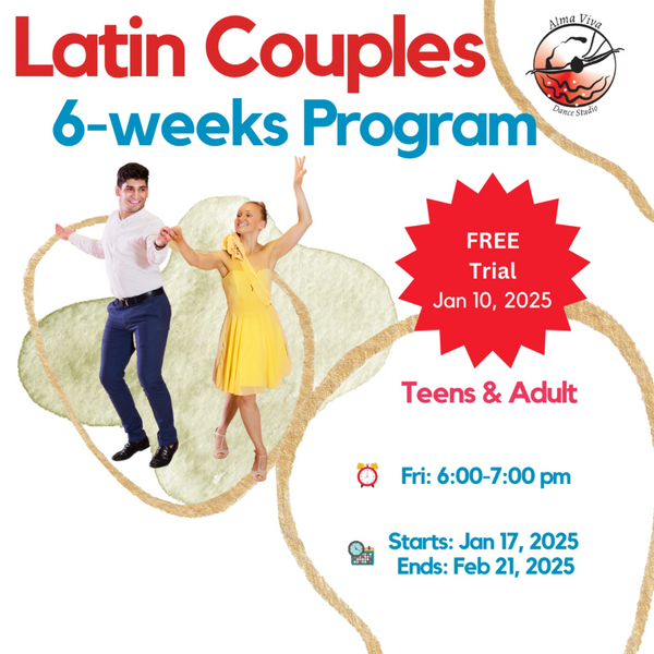 Join us with your partner to explore the dynamic world of Latin dance! This class is designed for beginners, offering the chance to learn various Latin dance styles such as Bachata, Salsa and Merengue while enjoying the thrill of dancing together. Discover new rhythms, master exciting shines, and most importantly, have a blast!
